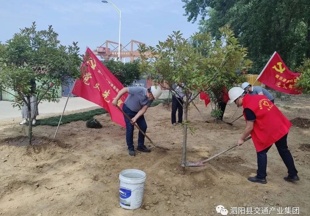 ●支部引領(lǐng)聚合力,黨員踐行顯擔(dān)當(dāng)。為進(jìn)一步加強“生態(tài)東港、美麗家園”建設(shè)工作,港務(wù)支部組織黨員職工開展港區(qū)大堤鋪草坪、植樹活動,美化泗陽港綠化環(huán)境,積極創(chuàng)建江蘇綠色港口。