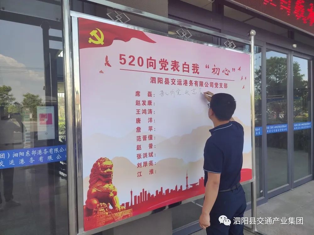 ●港務(wù)公司黨支部:當(dāng)“主題黨日”與“520”撞個滿懷,擦出了別樣的火花。黨員們在“520”表白墻上留下了對黨的愛意和祝福,紛紛表示,作為黨員要懷有更高的責(zé)任感和使命感,以實際行動踐行初心使命,立足崗位職責(zé),積極參加到疫情防控和復(fù)工復(fù)產(chǎn)工作中去。