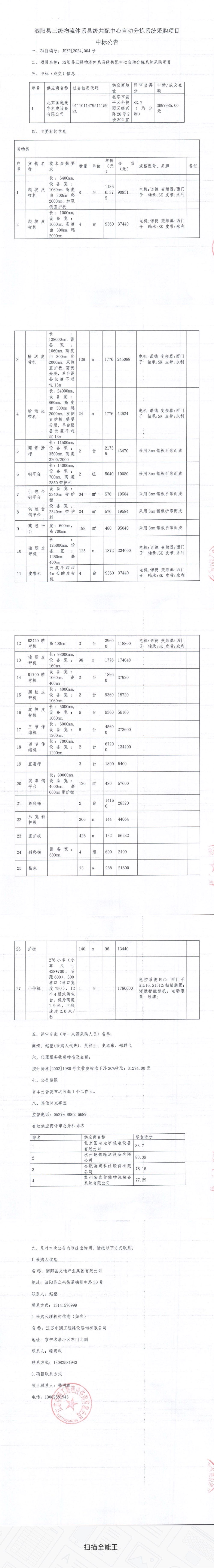 泗陽縣三級物流體系縣級共配中心自動分揀系統(tǒng)采購項目中標(biāo)公告